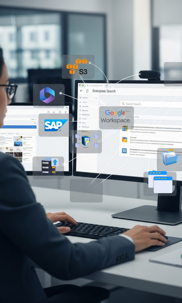 Search across all enterprise data sources: S3, Google Workspace, Microsoft 365, file systems, databases, SAP, on-prem servers or Web Pages.